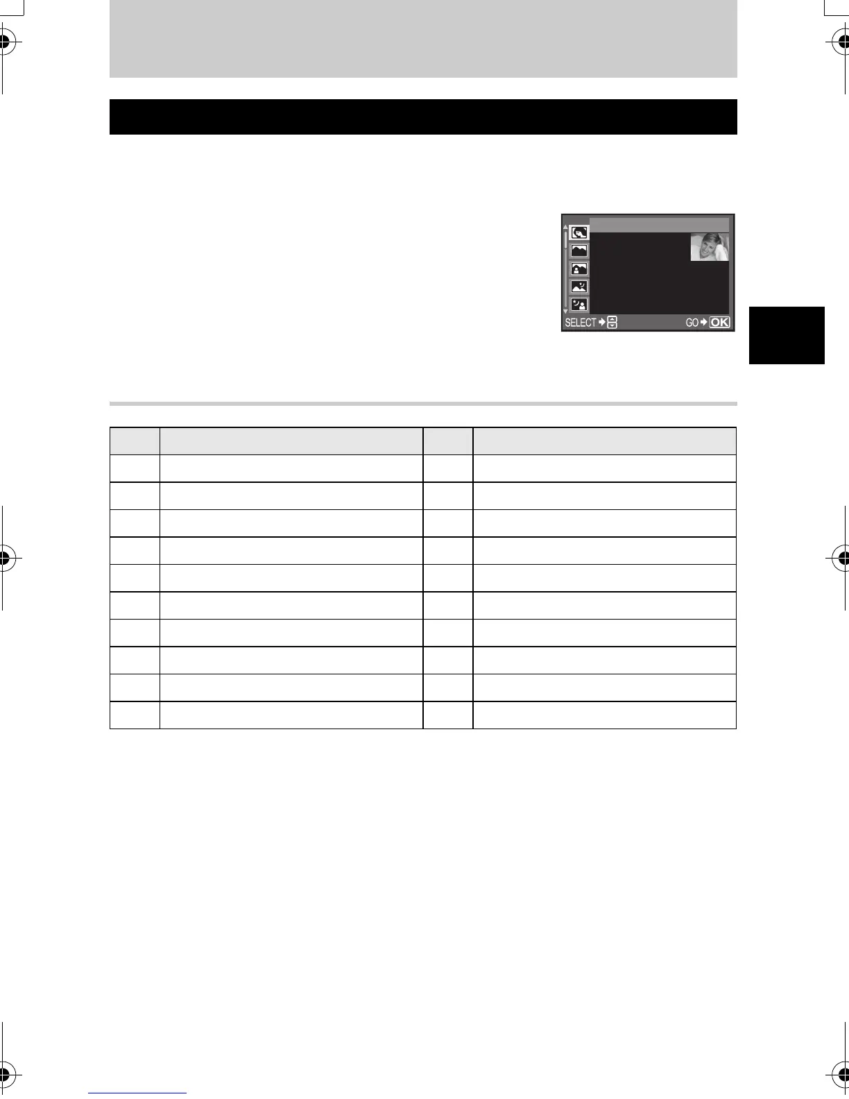 the shooting conditions. Unlike the mode dial’s scene mode, most functions cannot be