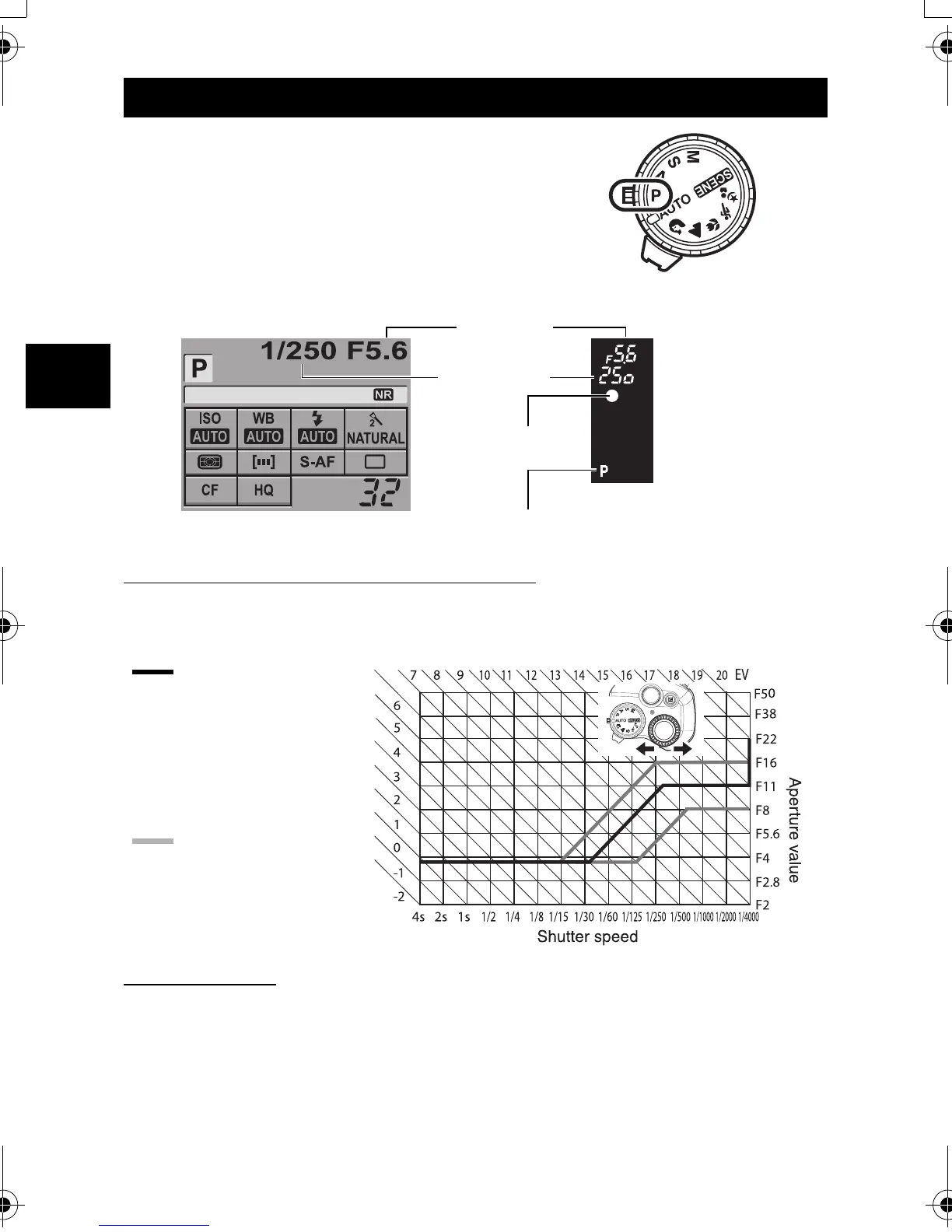 In the P mode, the camera is programmed such that the aperture value and shutter speed