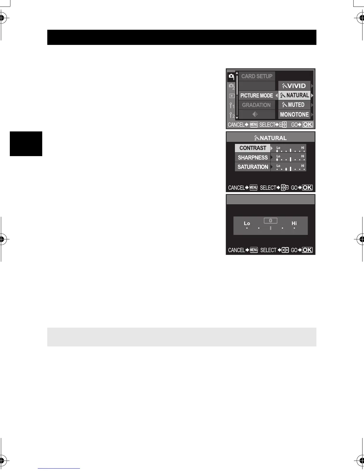• Contrast/Sharpness/B&W Filter/Pict. tone