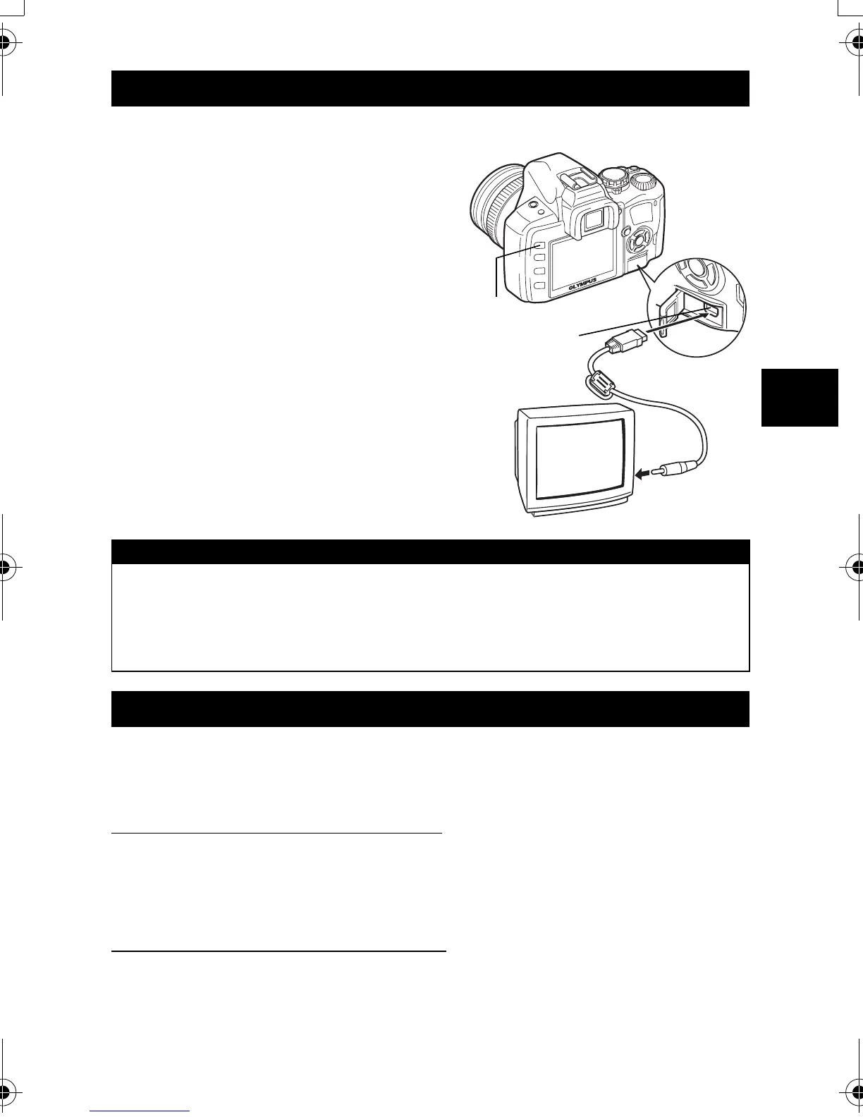 • The camera’s monitor turns off automatically when the video cable is connected to the