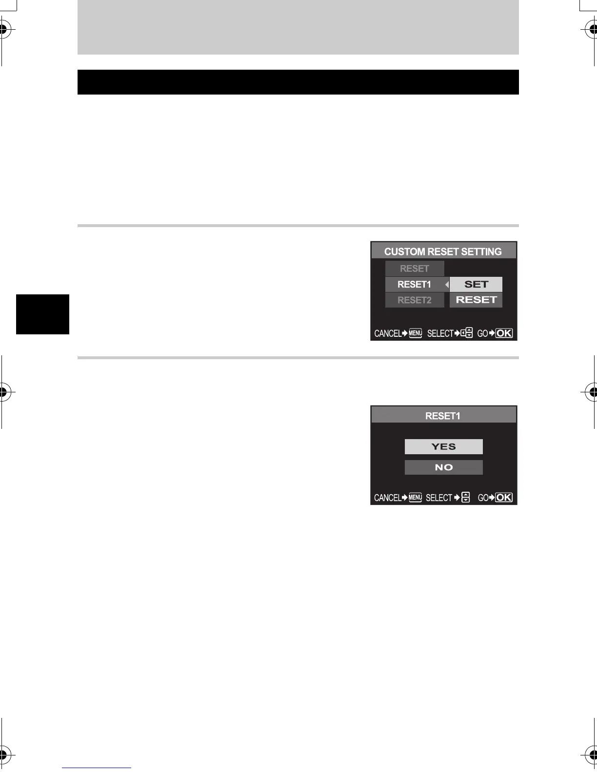 The camera settings at that time are registered in [RESET 1] and [RESET 2].