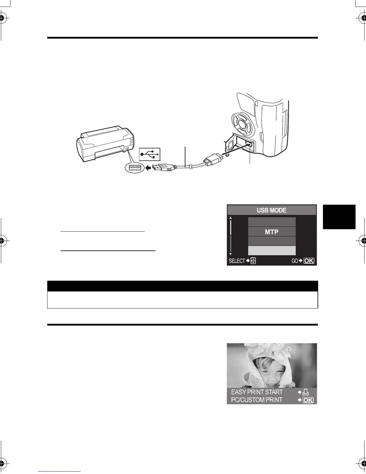Use the provided USB cable to connect the camera to a PictBridge-compatible printer.