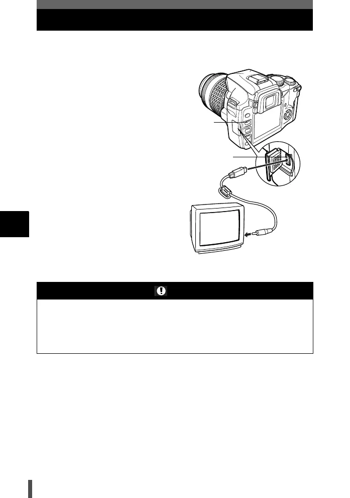 • The camera’s monitor turns off automatically when the video cable is connected to
