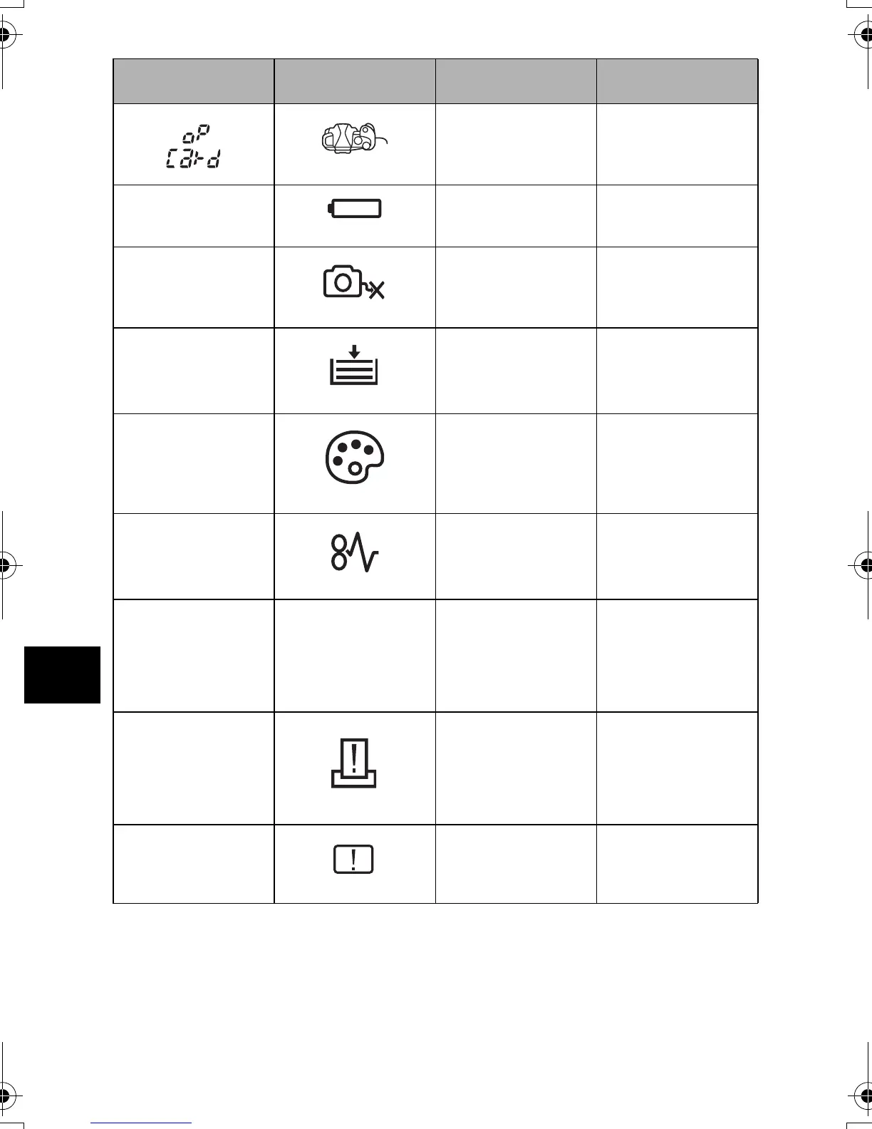 Monitor indication Possible cause Corrective action