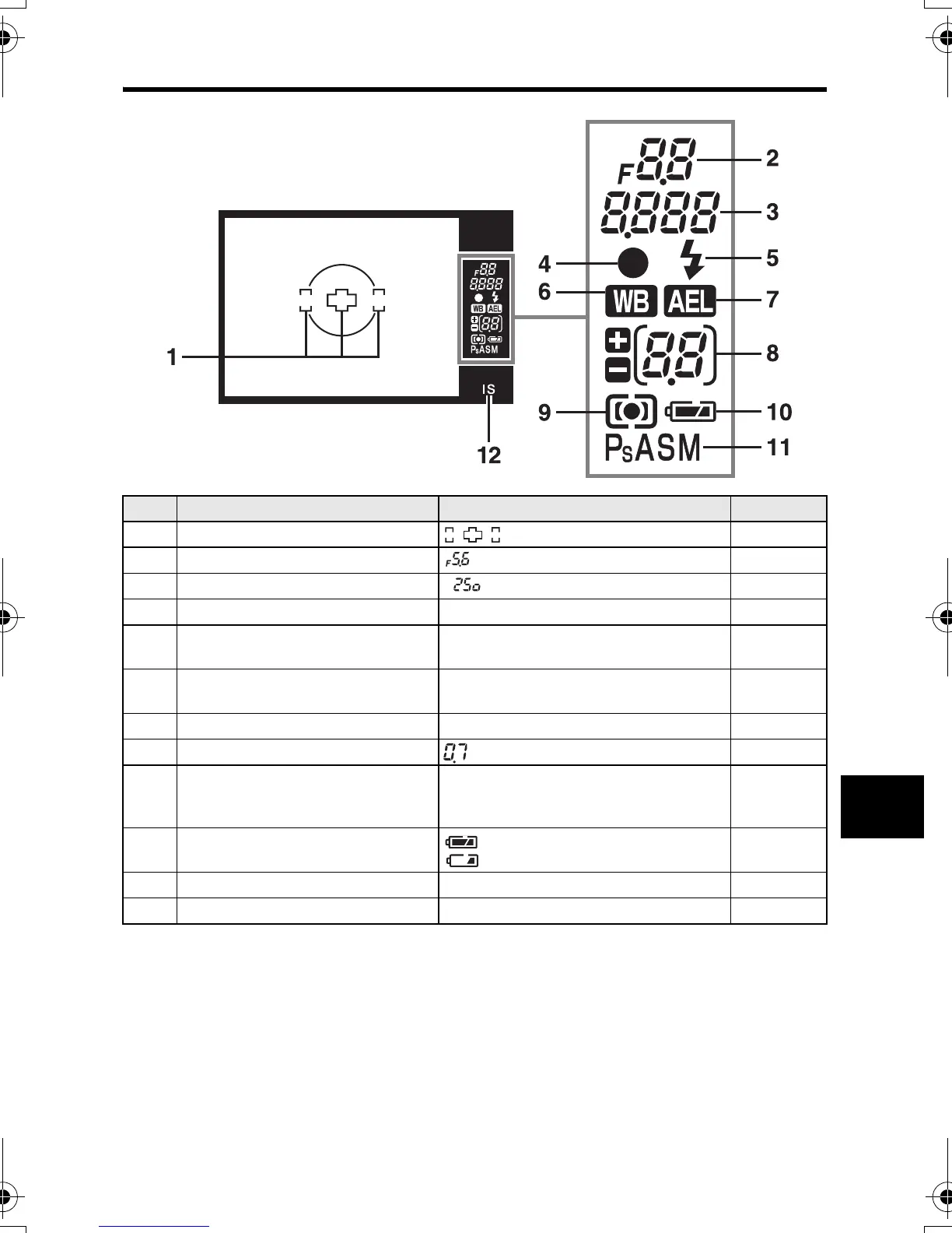 11 Exposure mode P, %, A, S, M P. 31 - 34