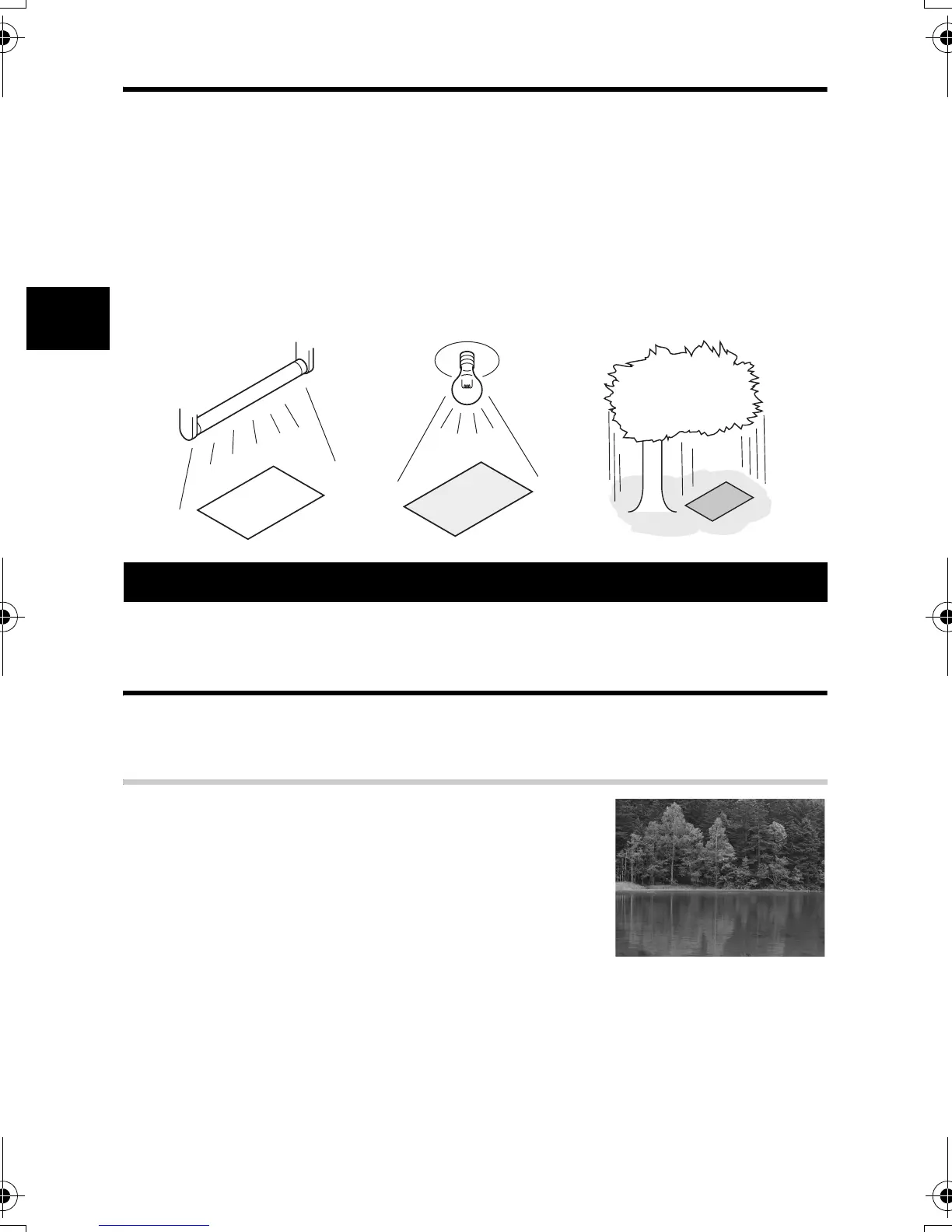 This section describes how to take outdoor scenery pictures of forests, lakes and beaches in
