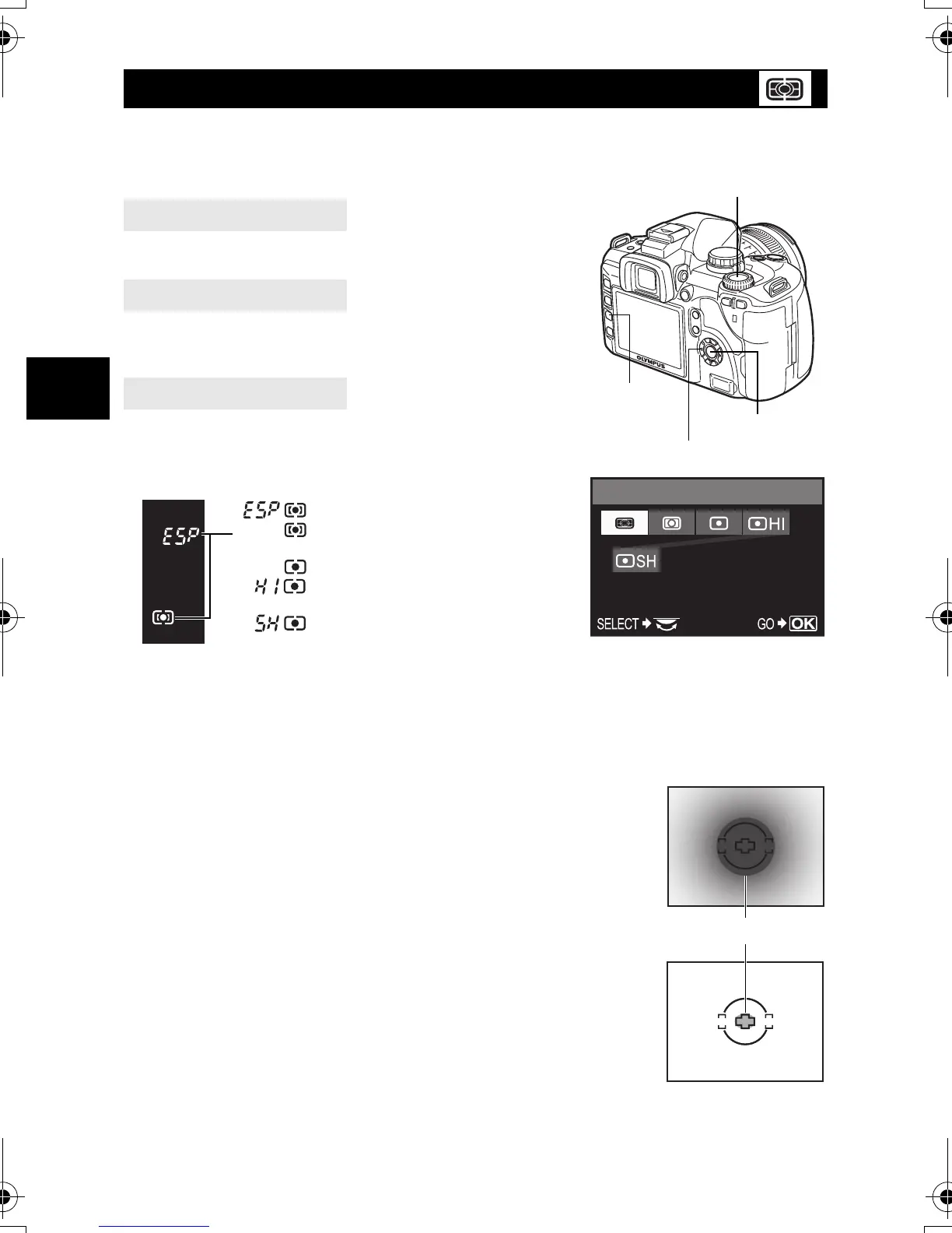 averaging metering, and three types of spot metering. Select the most suitable mode for the