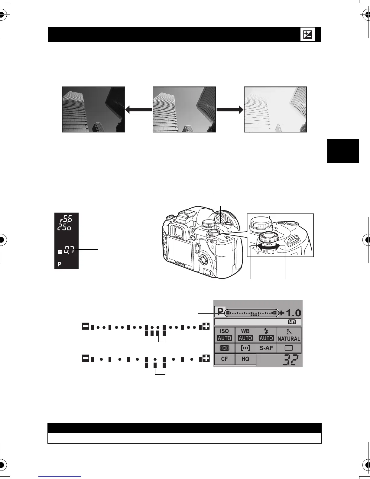 • The exposure compensation indicator will not be displayed when the exposure is compensated by