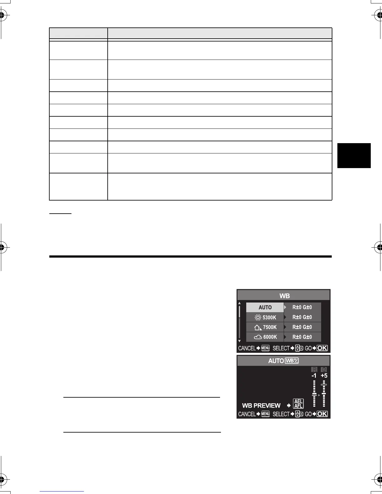 This function lets you make fine changes to the auto WB and preset WB settings.