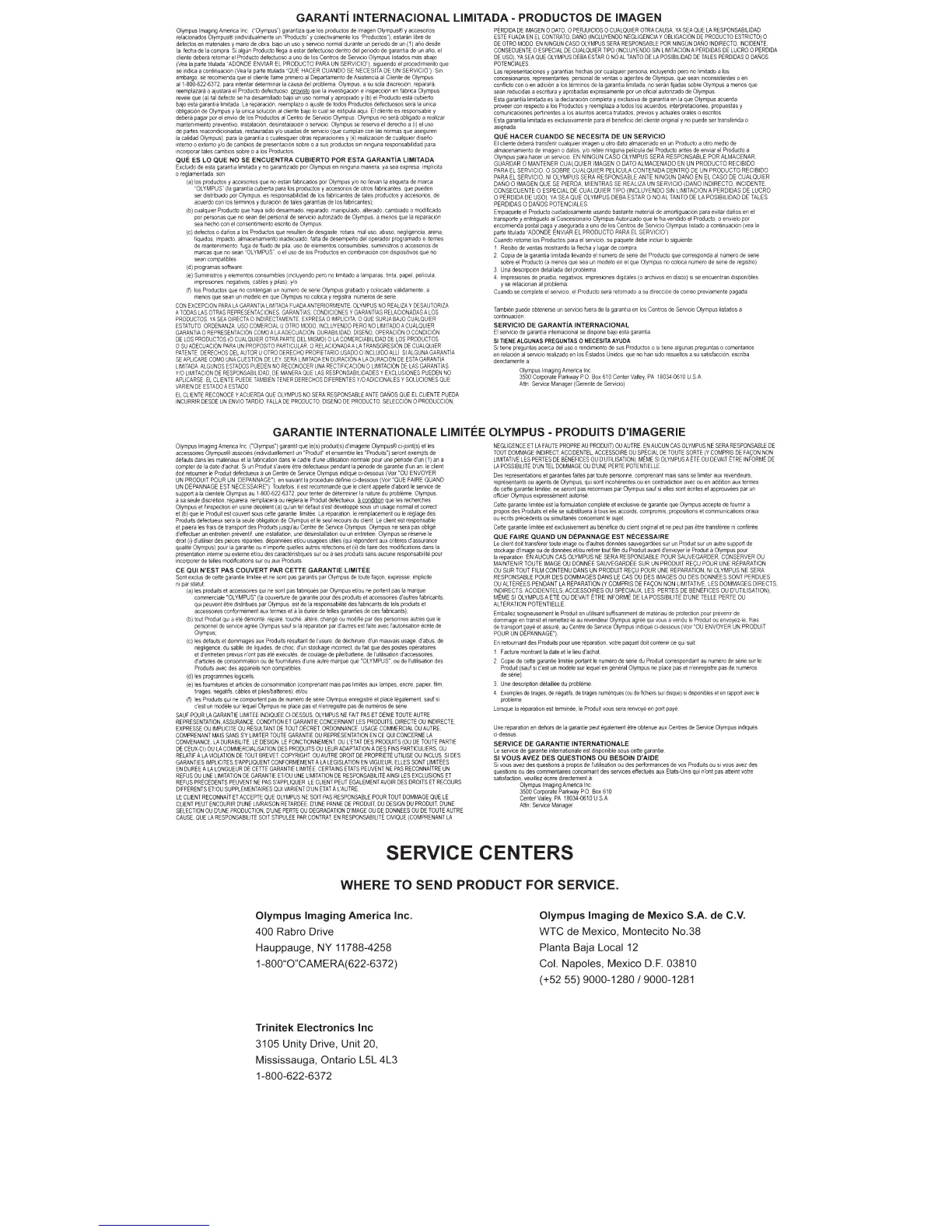 GARANTIE INTERNATIONALE LIMITEE OLYMPUS- PRODUITS D'IMAGERIE