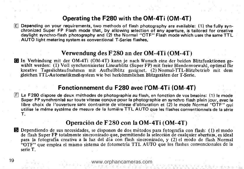 Olympus F280 - Operating the F280 with the OM-4 Ti (OM-4 T)