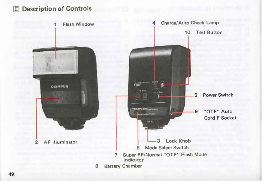 Olympus F280 - Description of Controls