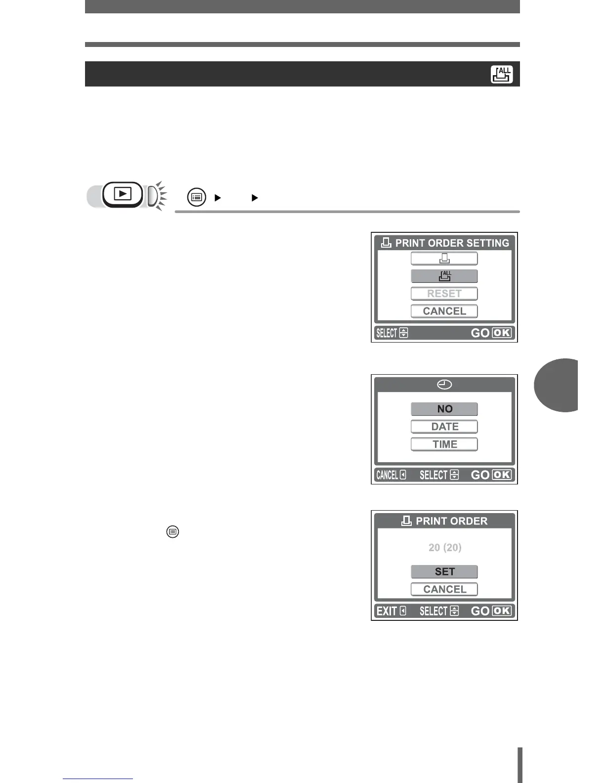 You can print one copy of all the images stored on the card. Select whether the print