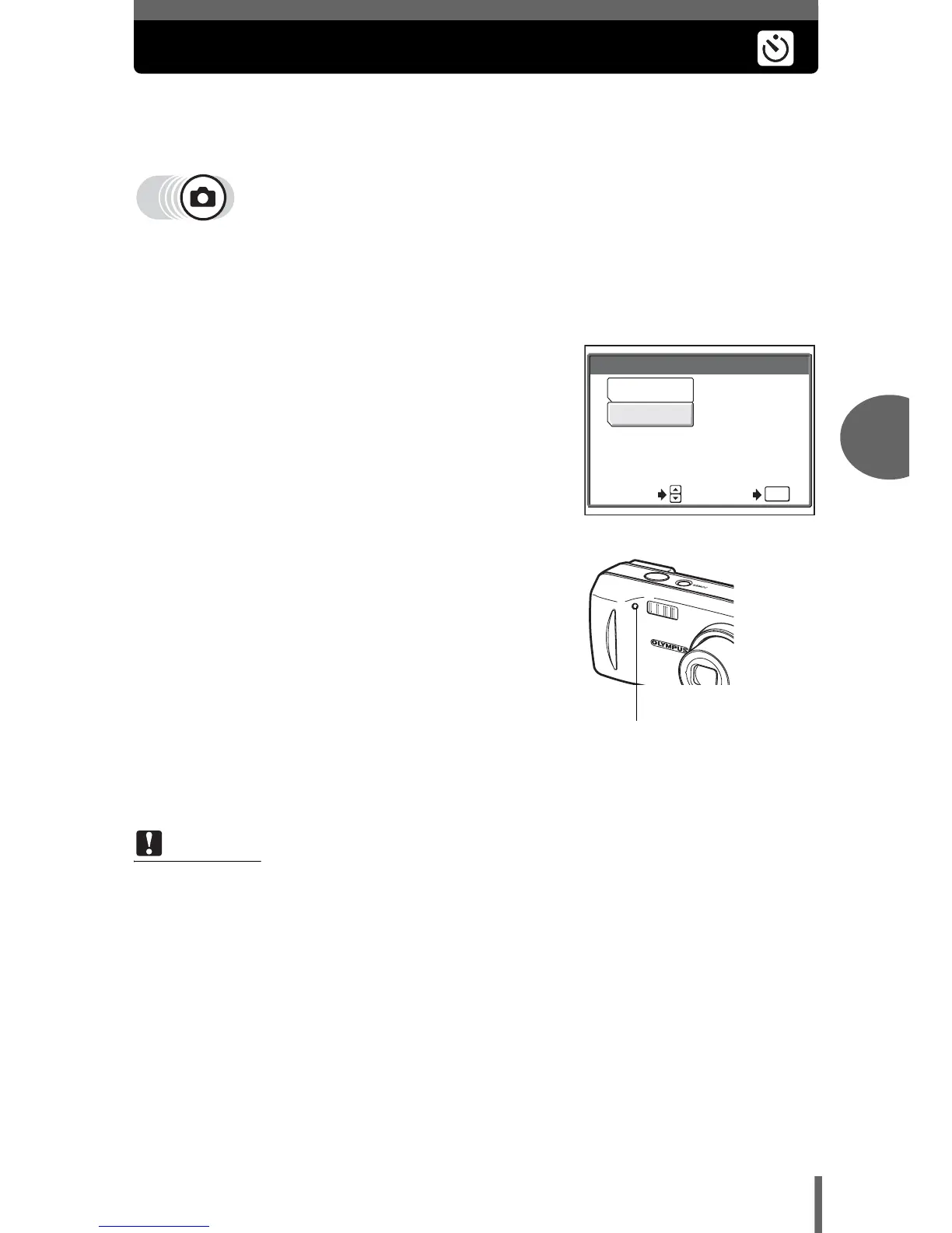 • The self-timer lamp lights for