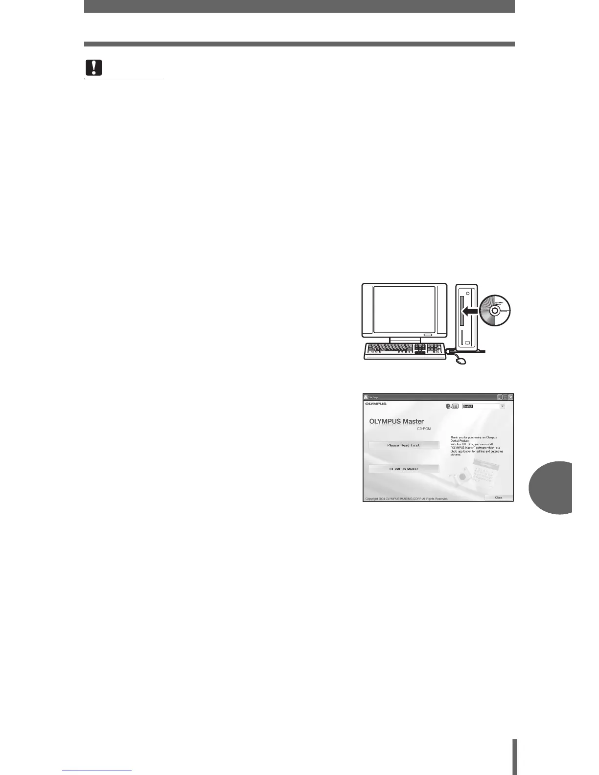 • The OLYMPUS Master setup screen is