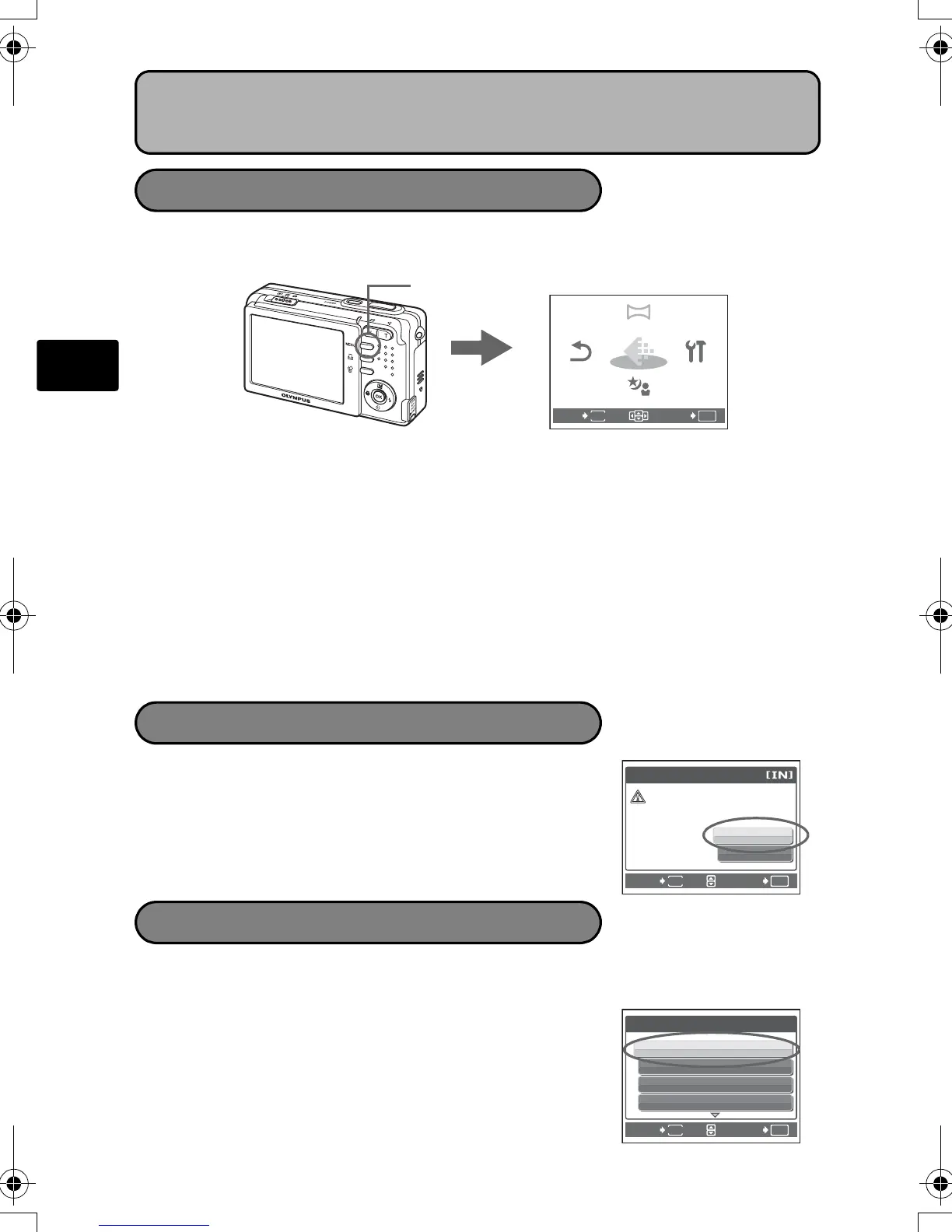 Select to take panorama pictures. The Olympus xD-Picture Card (optional) is