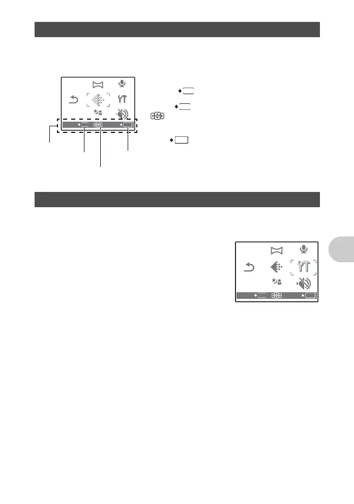 Au cours de l’utilisation des menus, les touches et leurs fonctions respectives sont