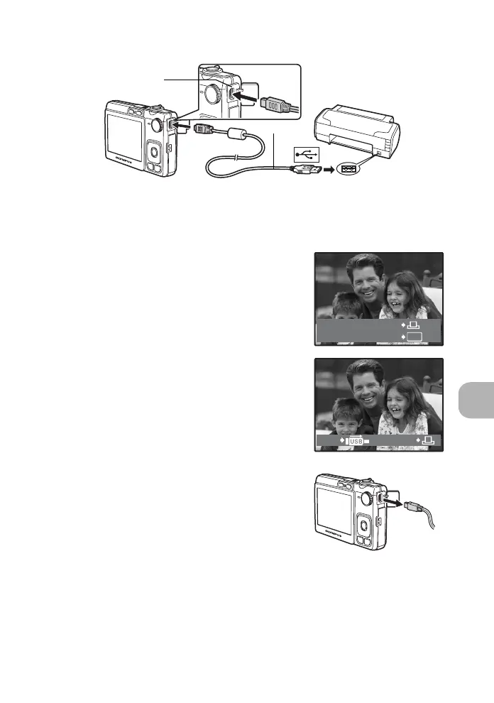 2 Ligar a impressora e ligar o cabo USB fornecido com a câmara