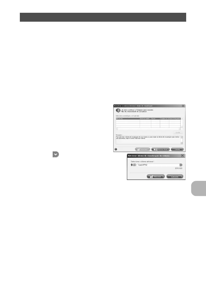 5 Na janela de navegação, seleccione “Câmara”, de seguida “Actualizar