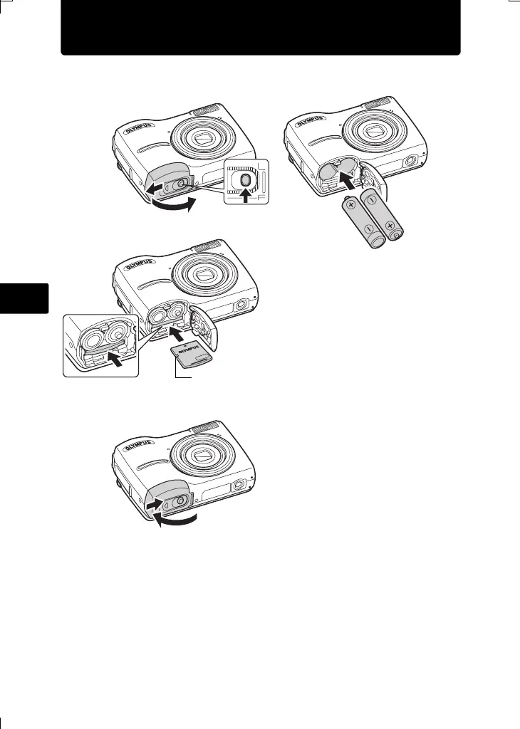 a. Inserte las baterías y la xD-Picture Card (opcional) en la