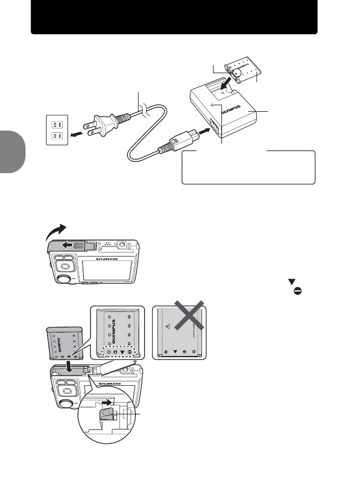 b. Insérez la batterie et une xD-Picture Card (en option).