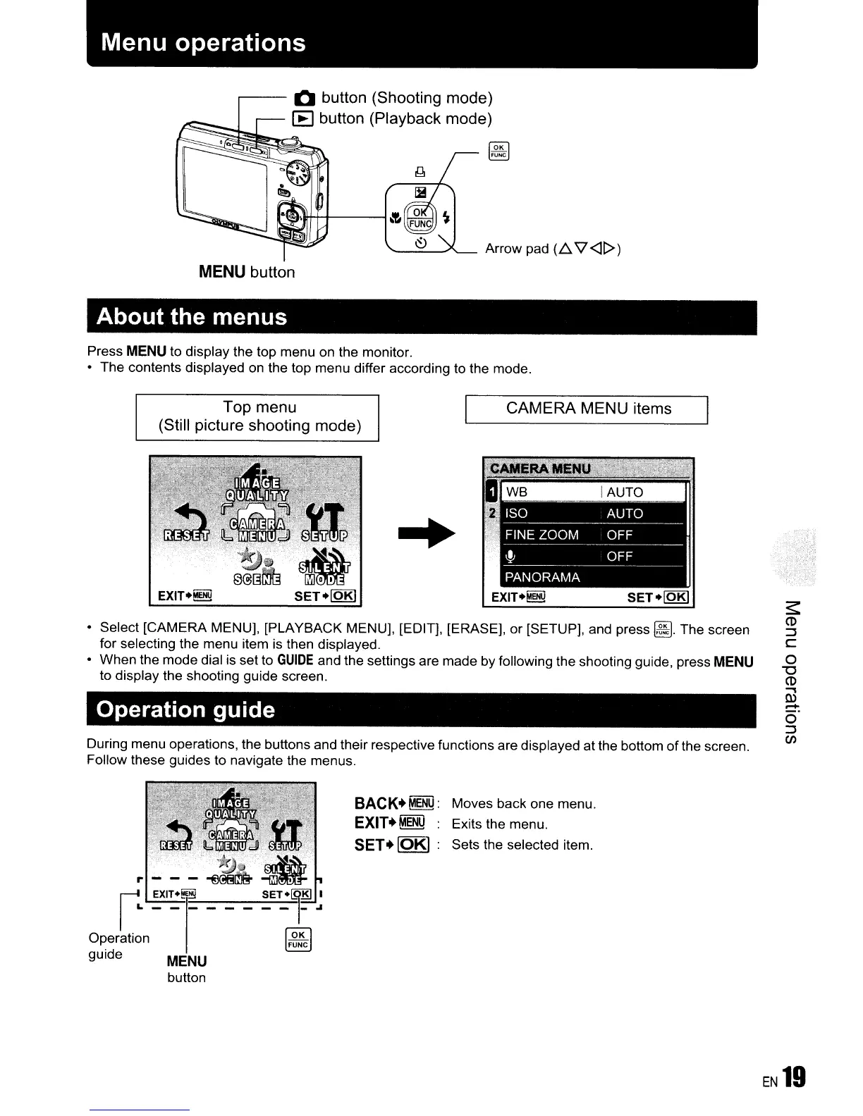 • Select [CAMERA MENU], [PLAYBACK MENU]. [EDIT], [ERASE]. or [SETUP], and press