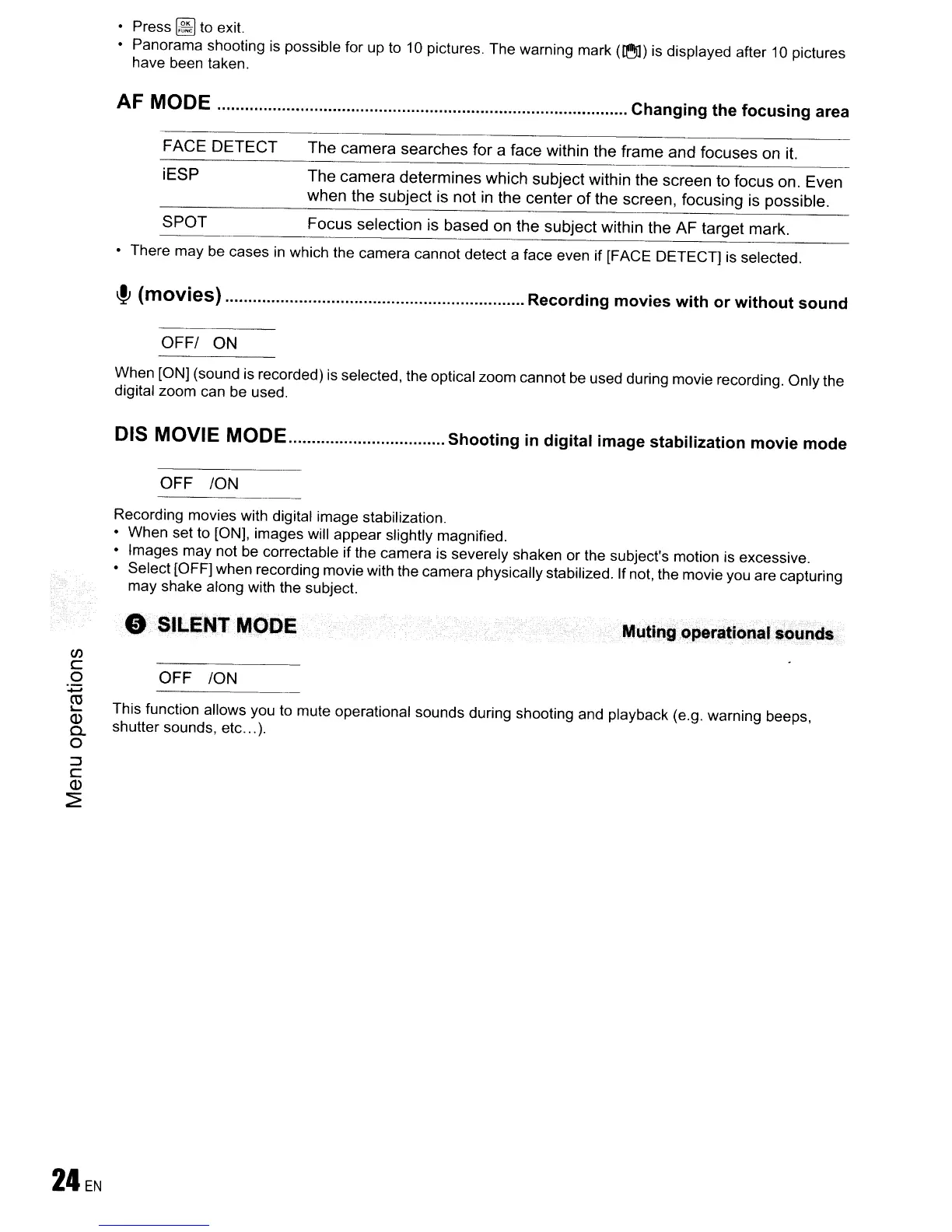 This function allows you to mute operational sounds during shooting and playback (e.g. warning beeps,