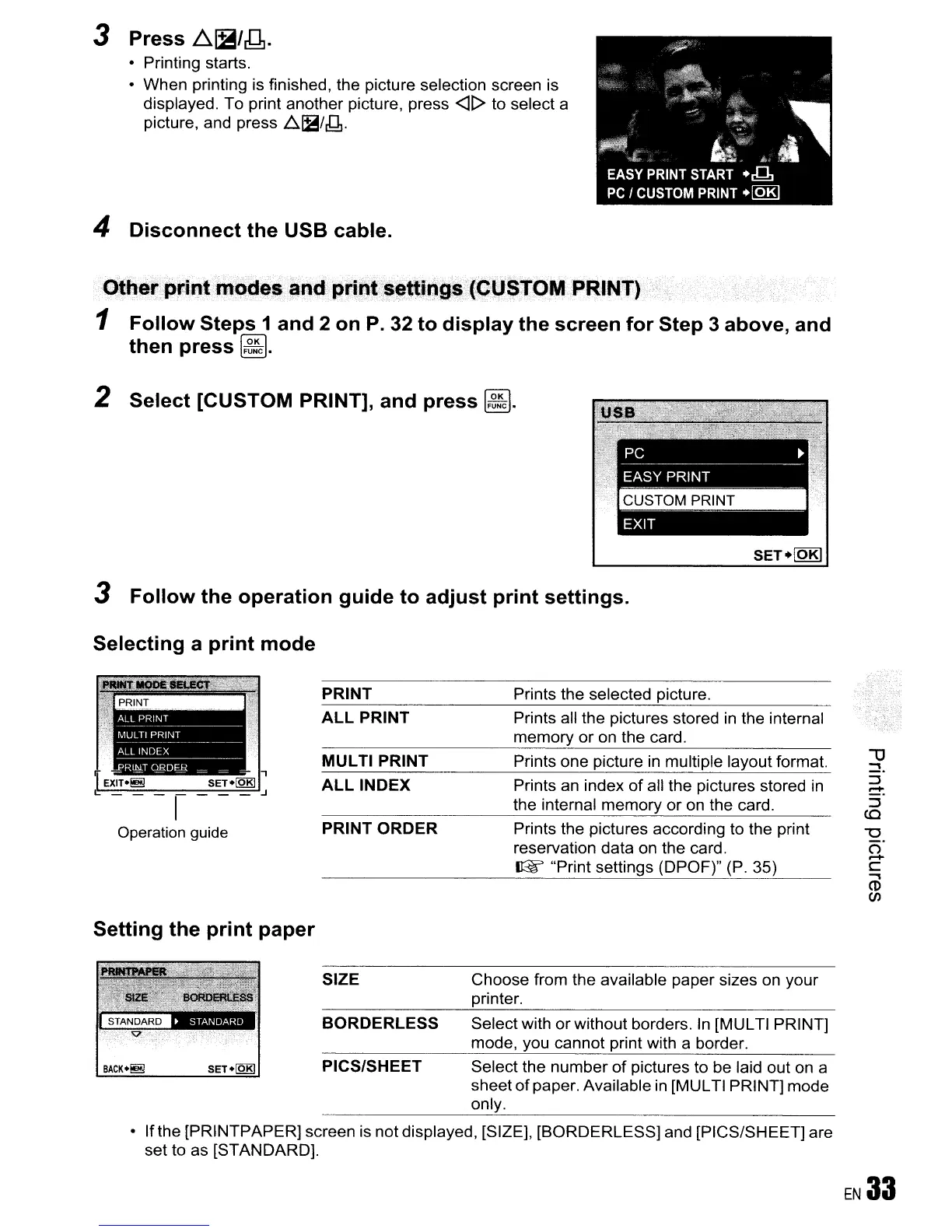 - Ifthe [PRINTPAPER] screen is not displayed. [SIZE]. [BORDERLESS] and [PICS/SHEET] are