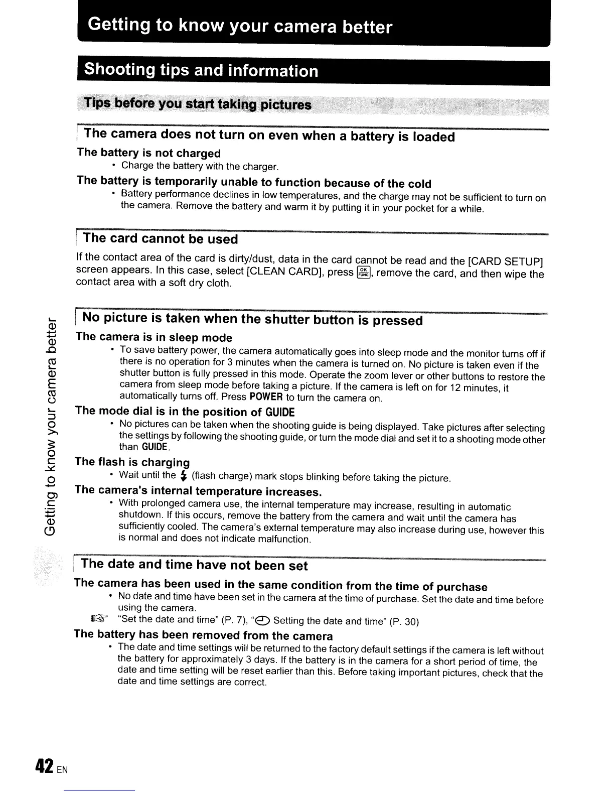 date and time setting will be reset earlier than this. Before taking important pictures, check that the