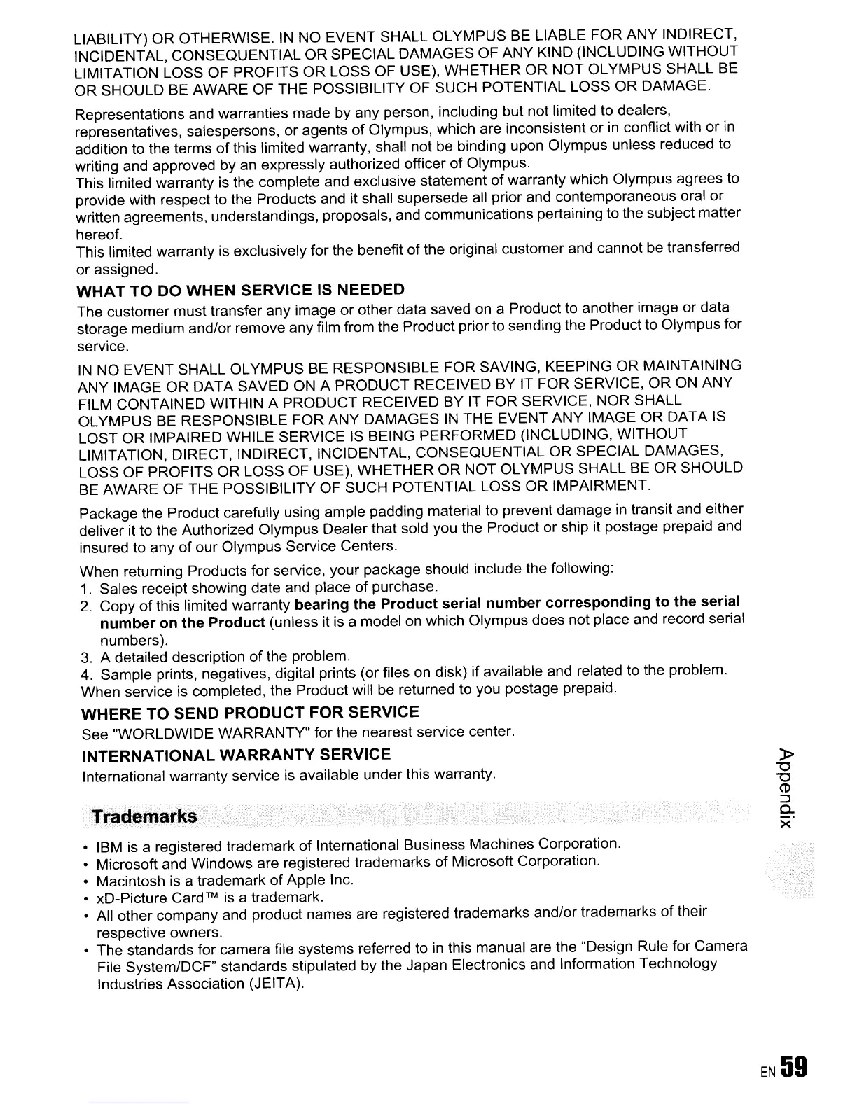 storage medium and/or remove any film from the Product prior to sending the Product to Olympus for