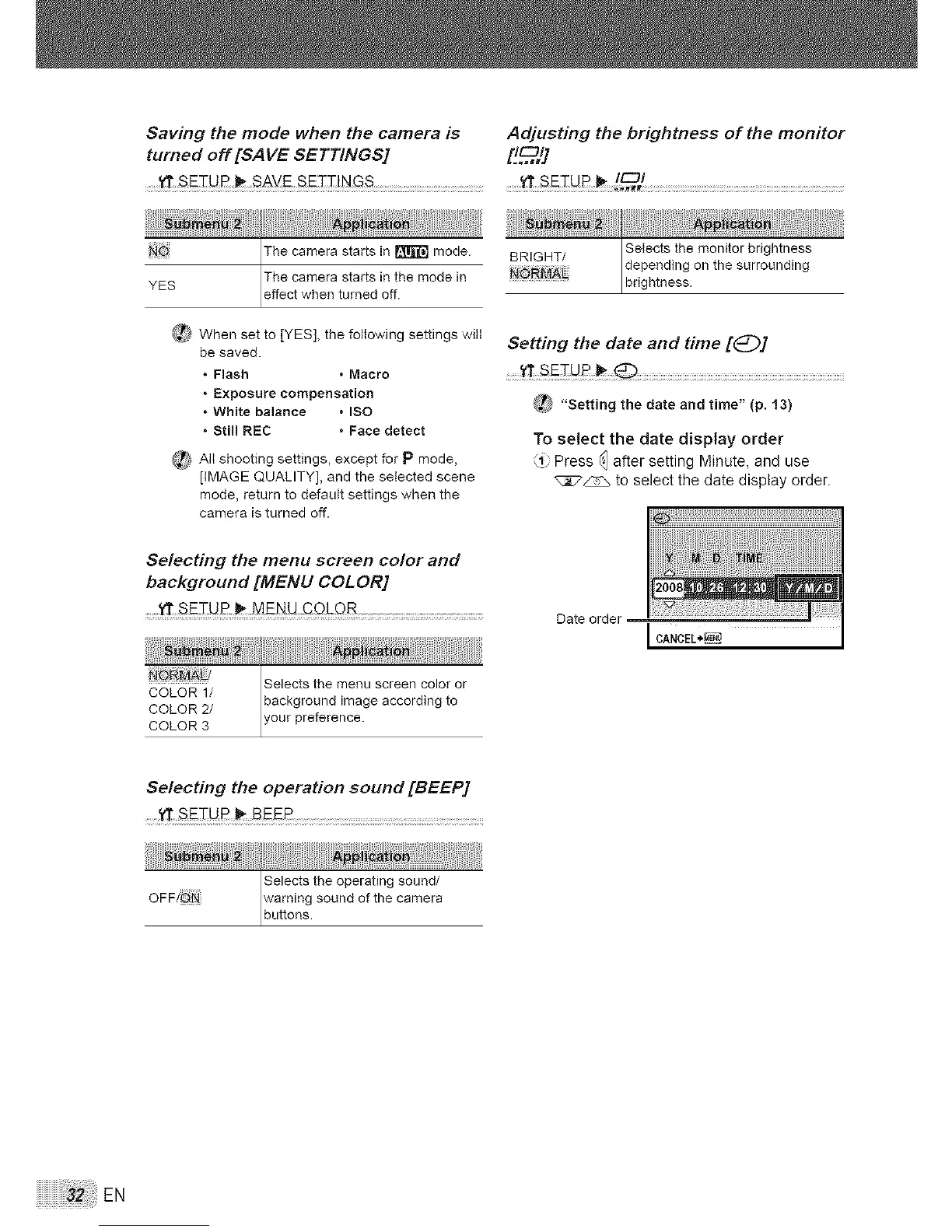 Saving the mode when the camera is Adjusting the brightness of the monitor