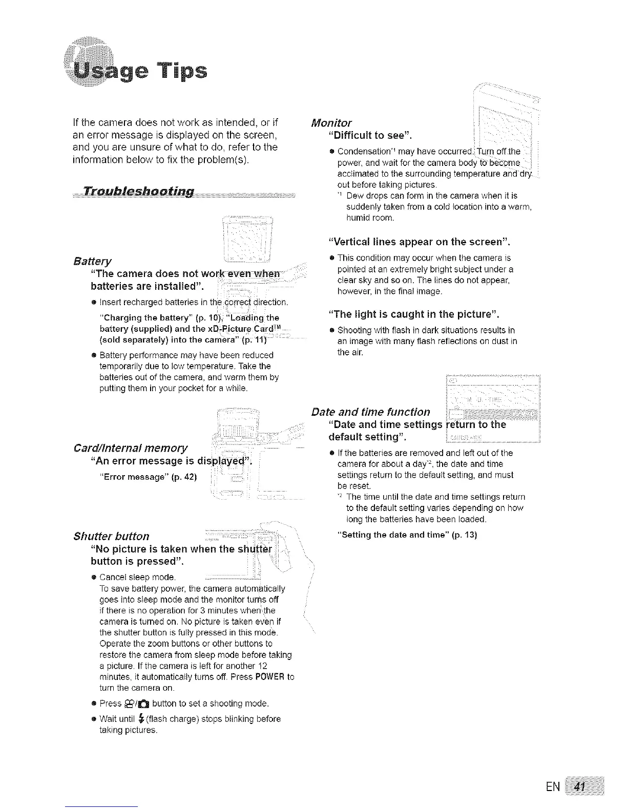 battery (supplied) and the xD;Picture CardTM