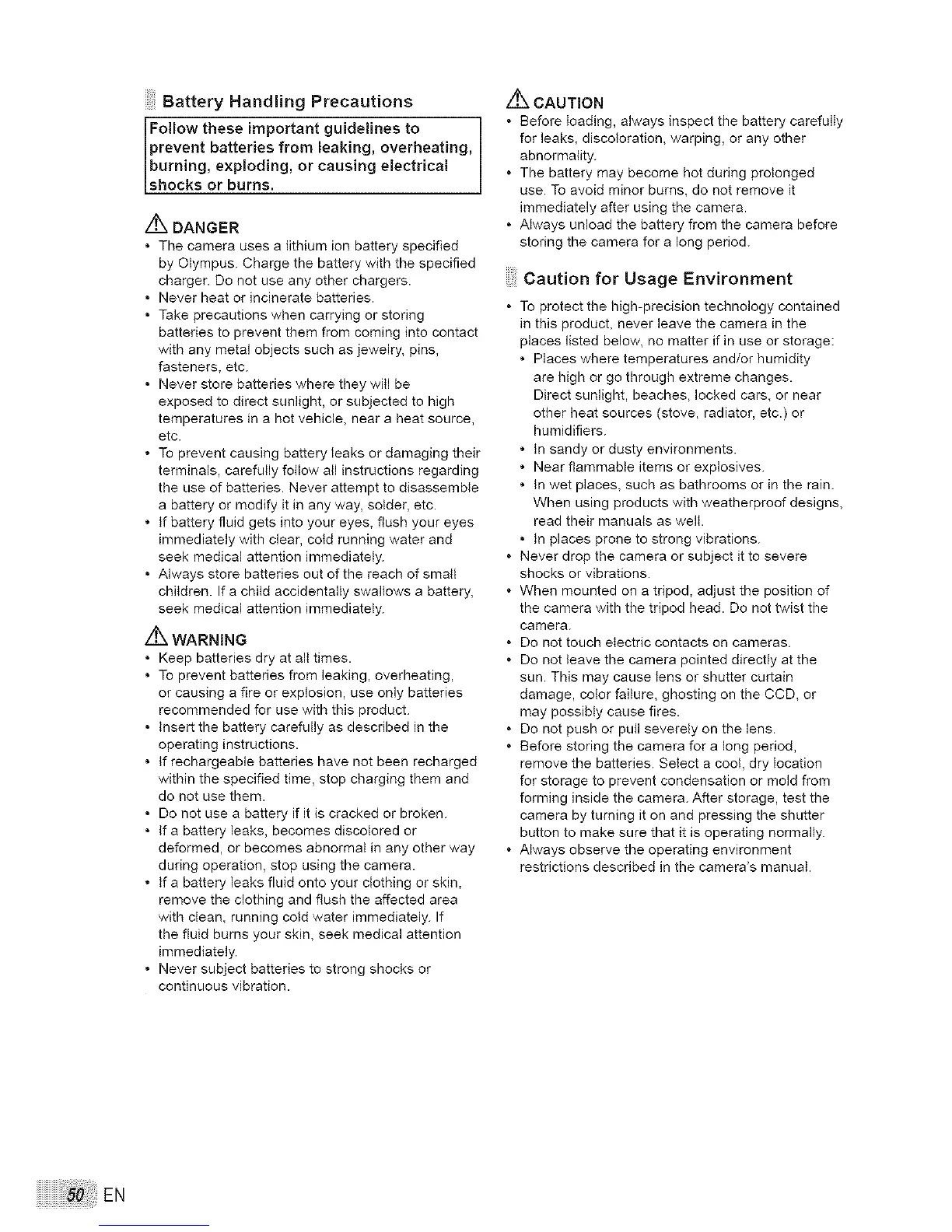 • The camera uses a lithium ion battery specified