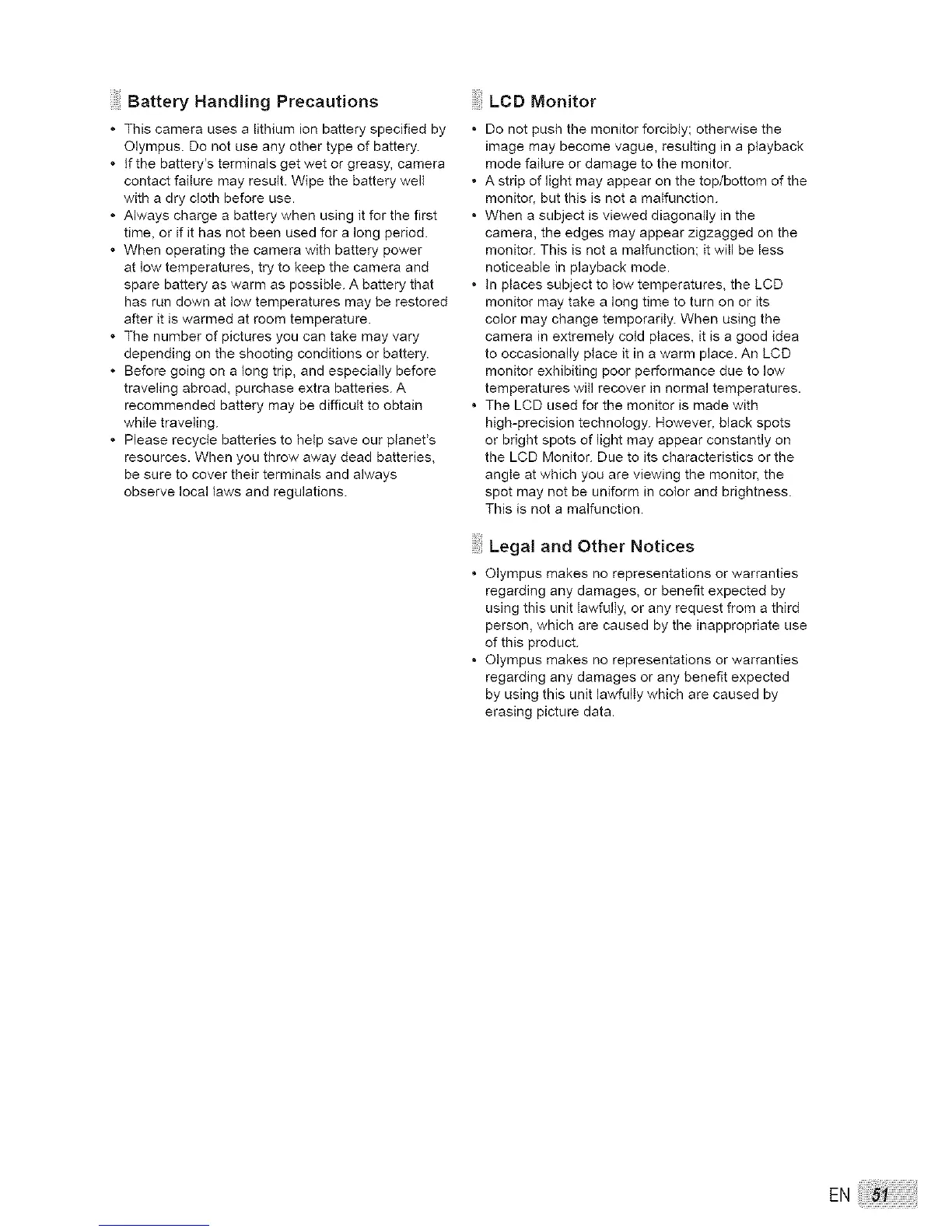 • Olympus makes no representations or warranties