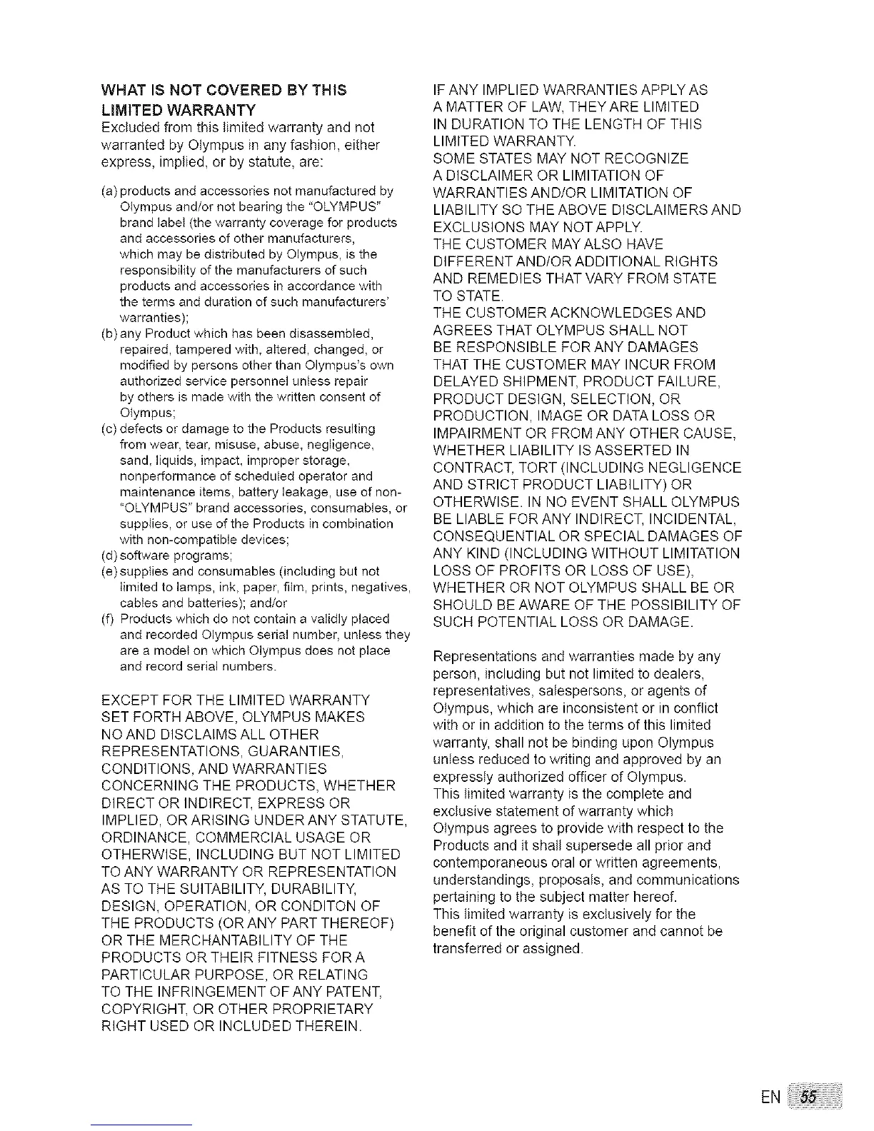 OTHERWISE. IN NO EVENT SHALL OLYMPUS