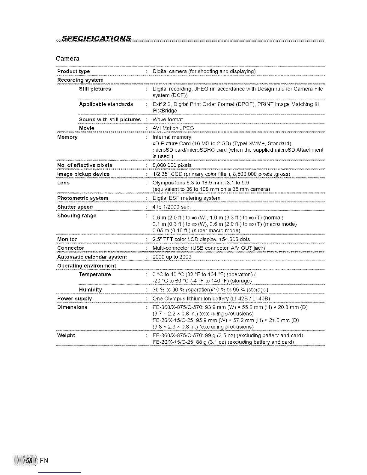 Power supply : One Olympus lithium ion battery (Lt-42B / LI-40B)