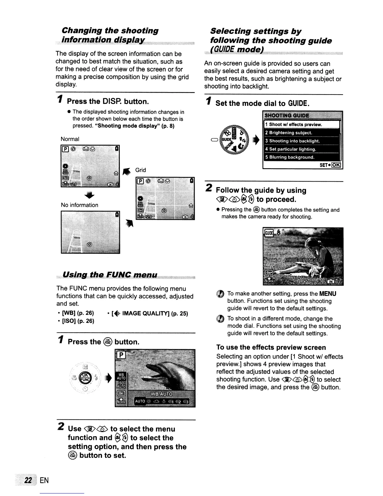 button. Functions set using the shooting
