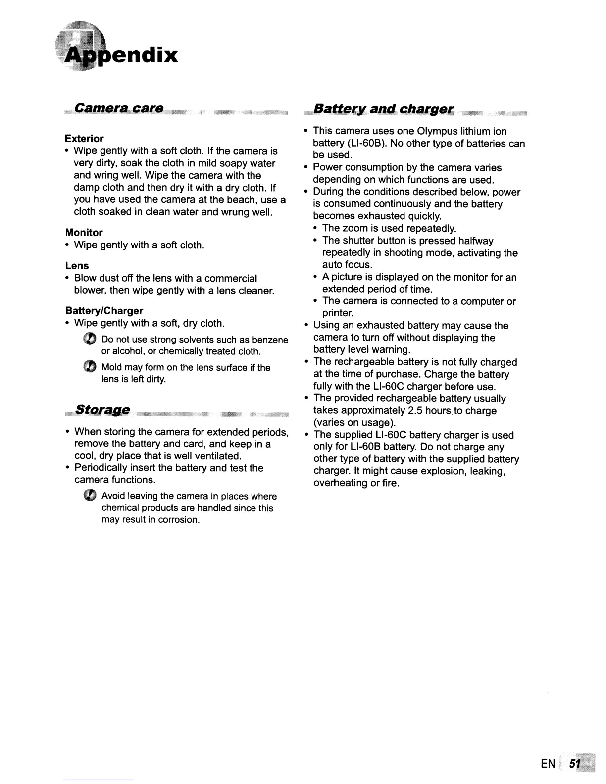 • This camera uses one Olympus lithium ion