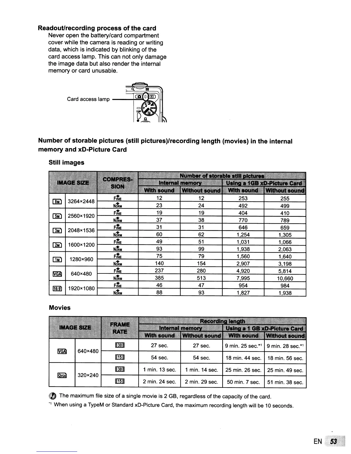 When using a TypeM or Standard xD-Picture Card, the maximum recording length will be