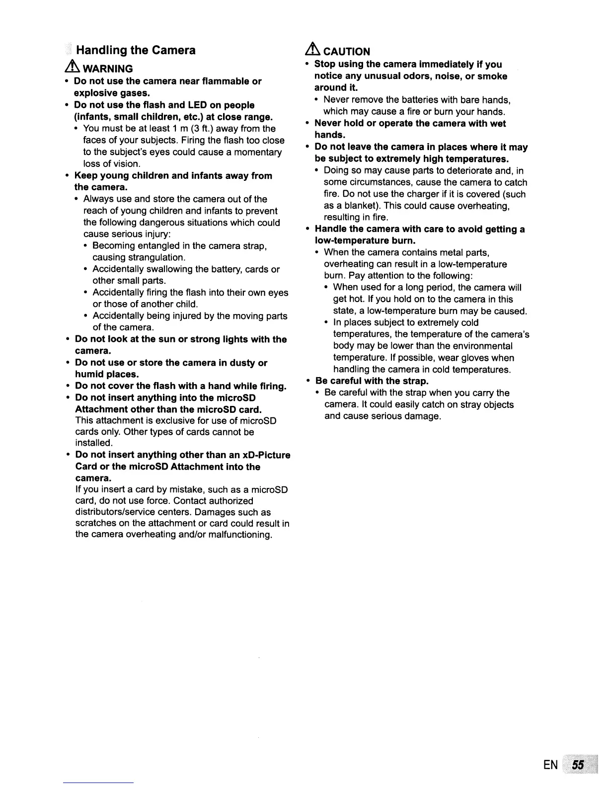 • Always use and store the camera out