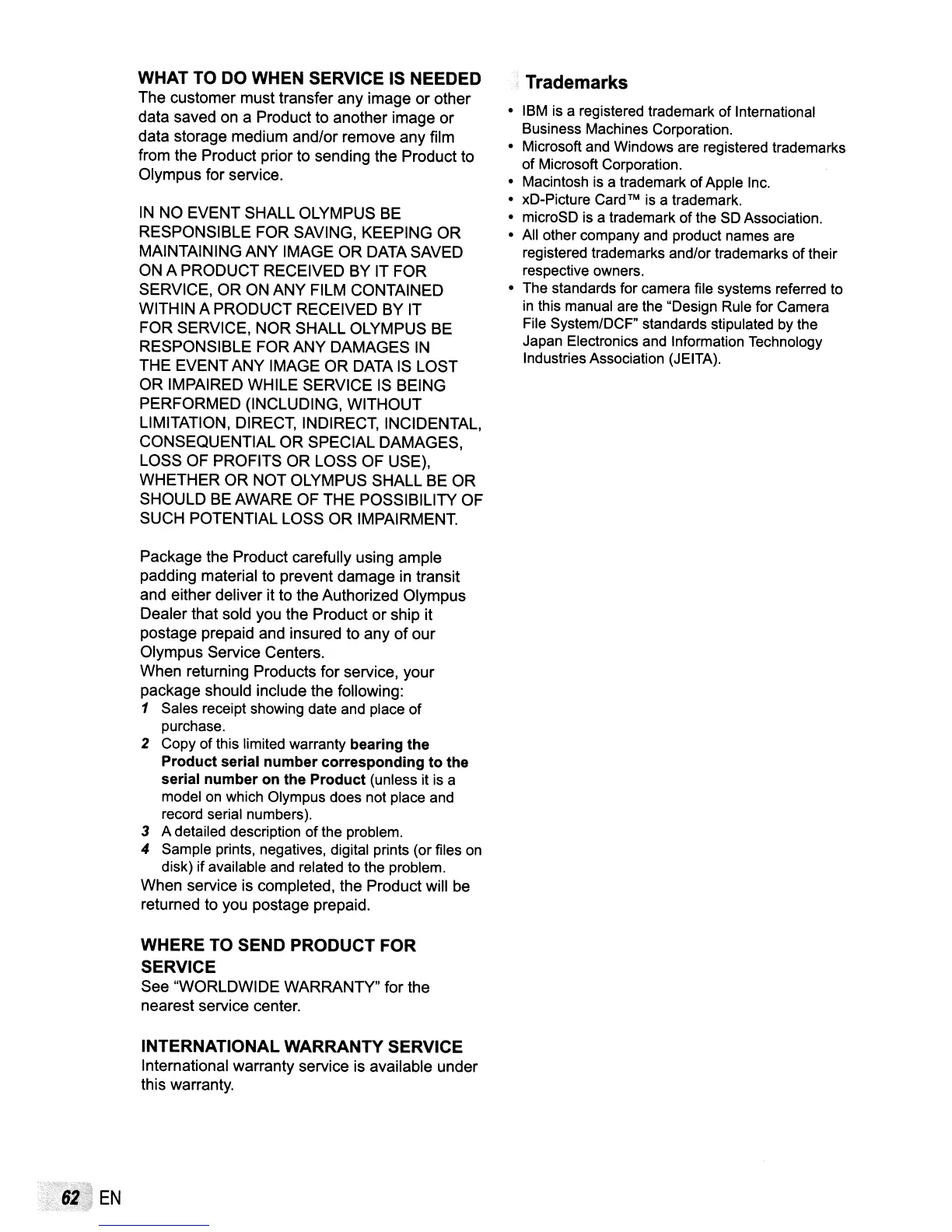 FOR SERVICE, NOR SHALL OLYMPUS BE