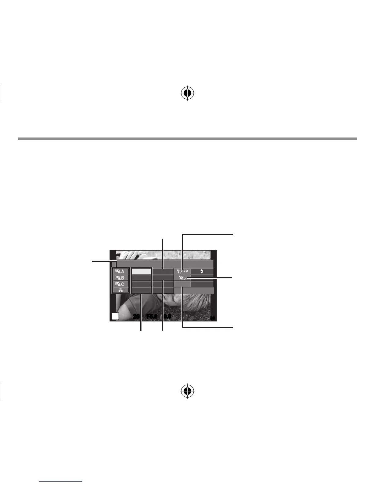 Az A és B a csoportbeállítást jelenti. Az egyes csoportok a vakuvezérlő üzemmódjuk