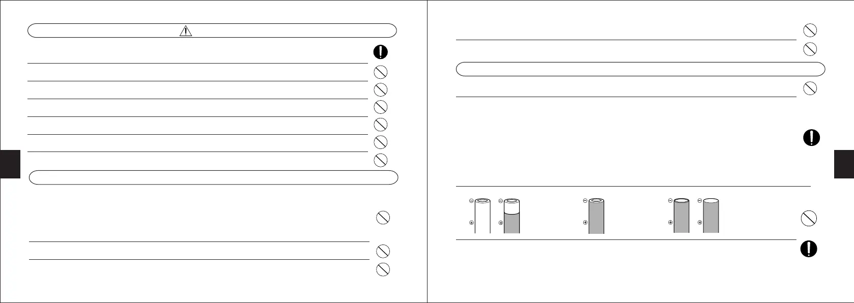 • Do not load or use the batteries with the +/– polarity reversed. If the batteries do not fit smoothly in the battery