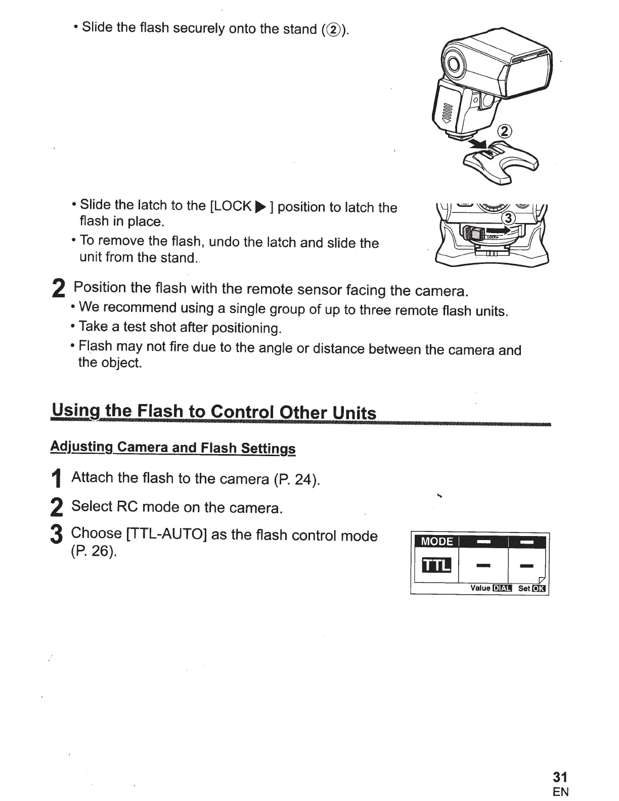 Choose [TTL-AUTO] as the flash control