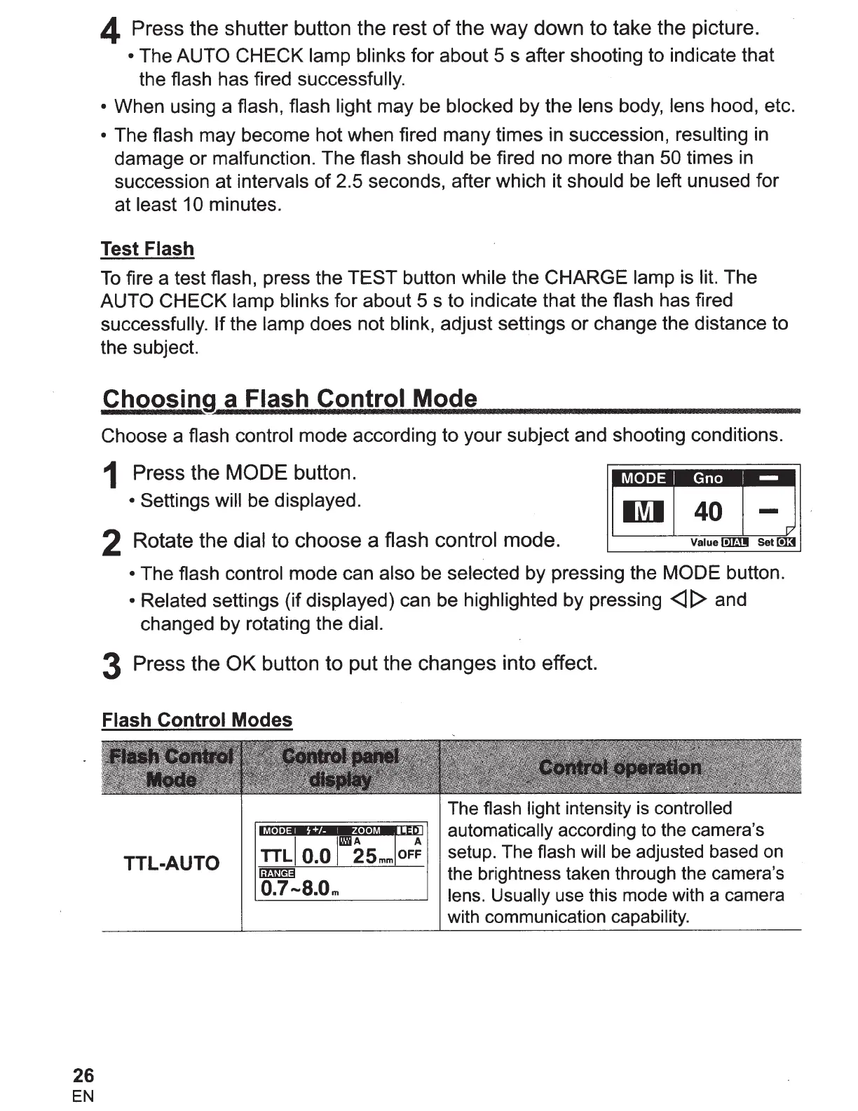 fire a test flash, press the