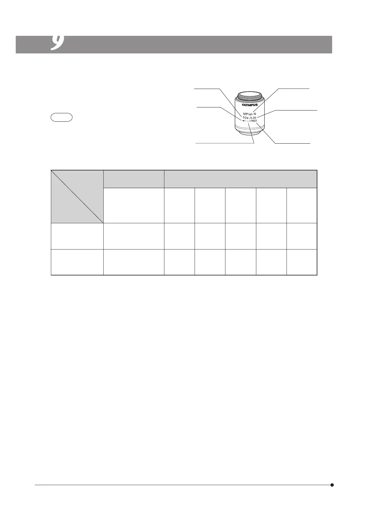 jective specifications are marked on the objective (as