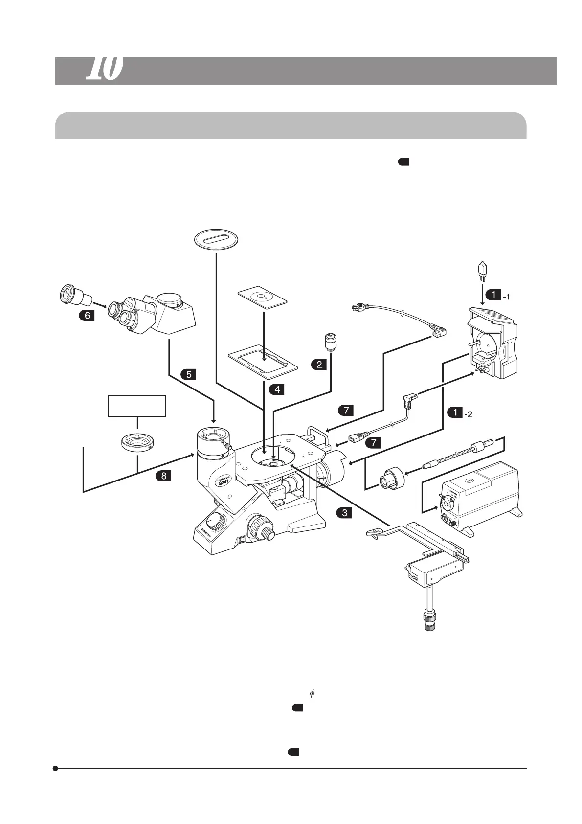 (Note) The CKX-TBI and U-CTBI tilting tubes can use only the eyepieces provided with them. (Otherwise, the illumination at the
