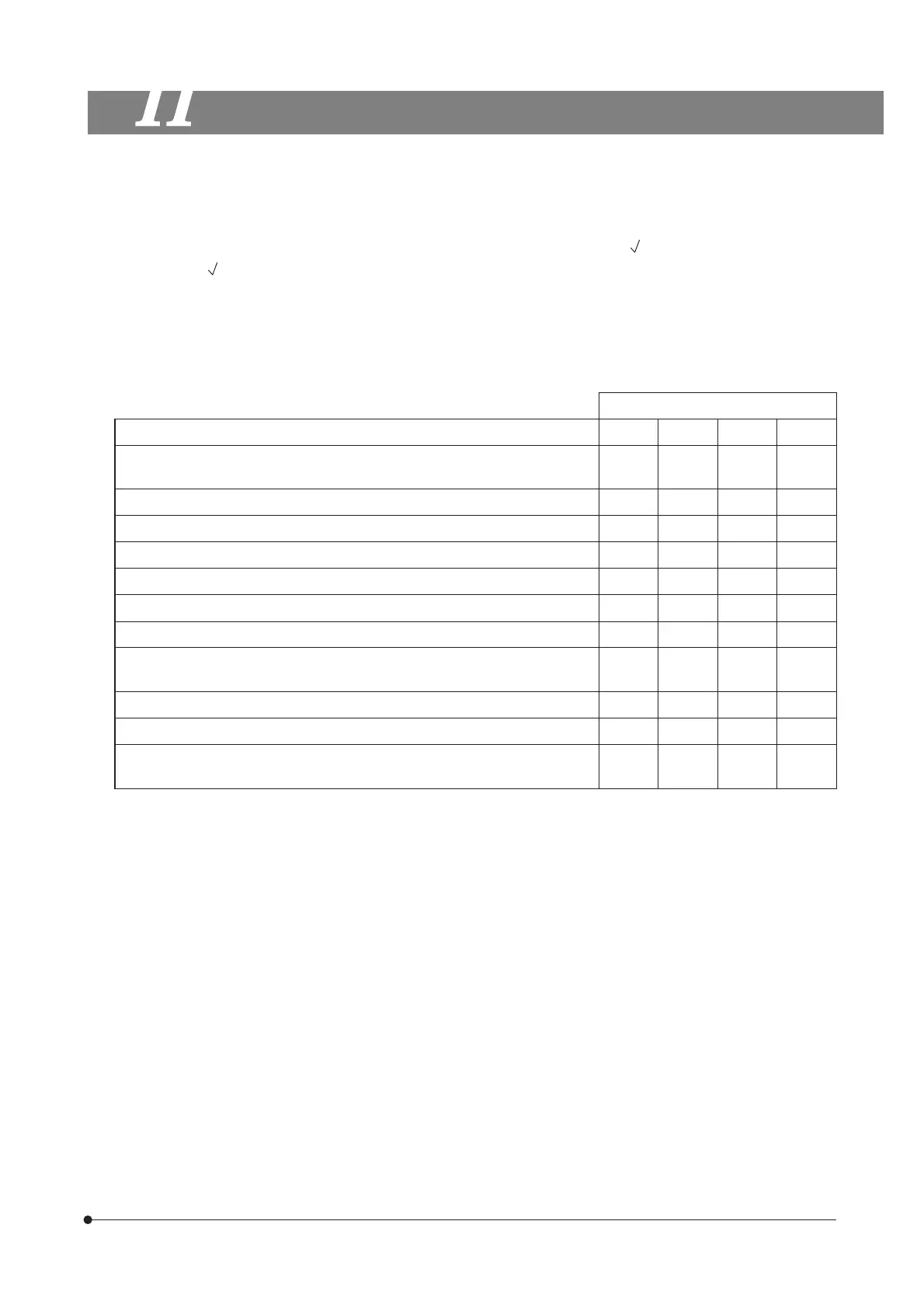 {The table below identified the check items to be observed. Put (X) if not applicable or ( ) if applicable.