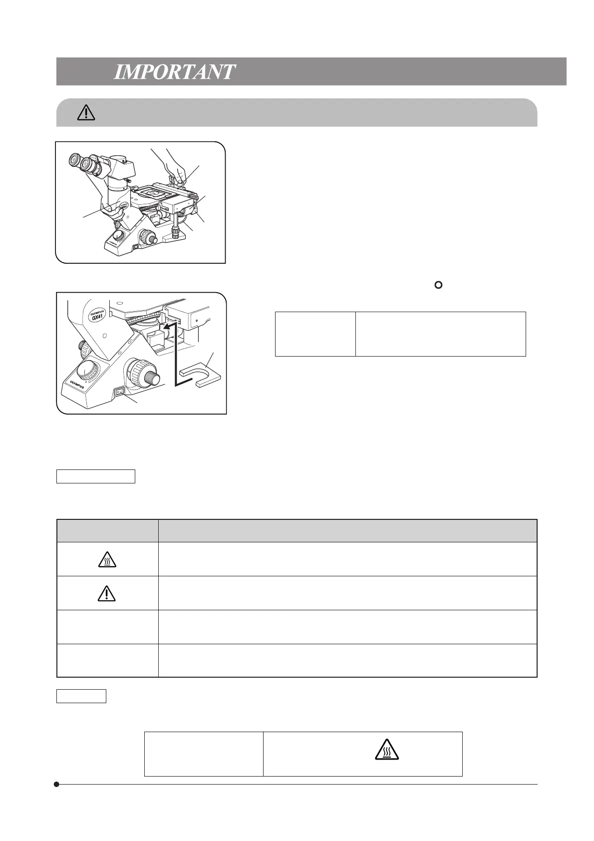 The following symbols are found on the microscope. Study the meaning of the symbols, and always use the equipment in