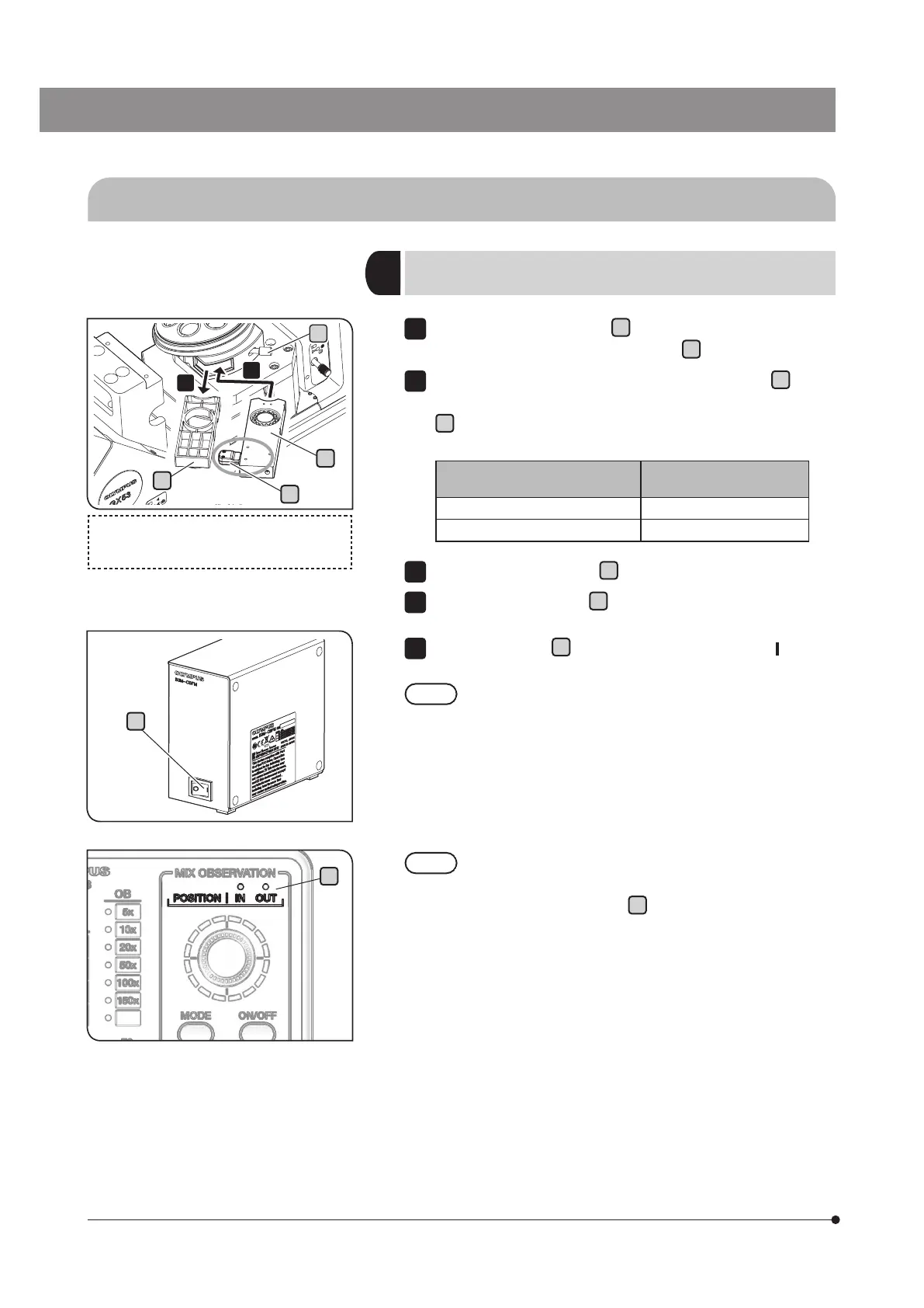 Insert the MIX slider for reflected light observation (U-MIXR)